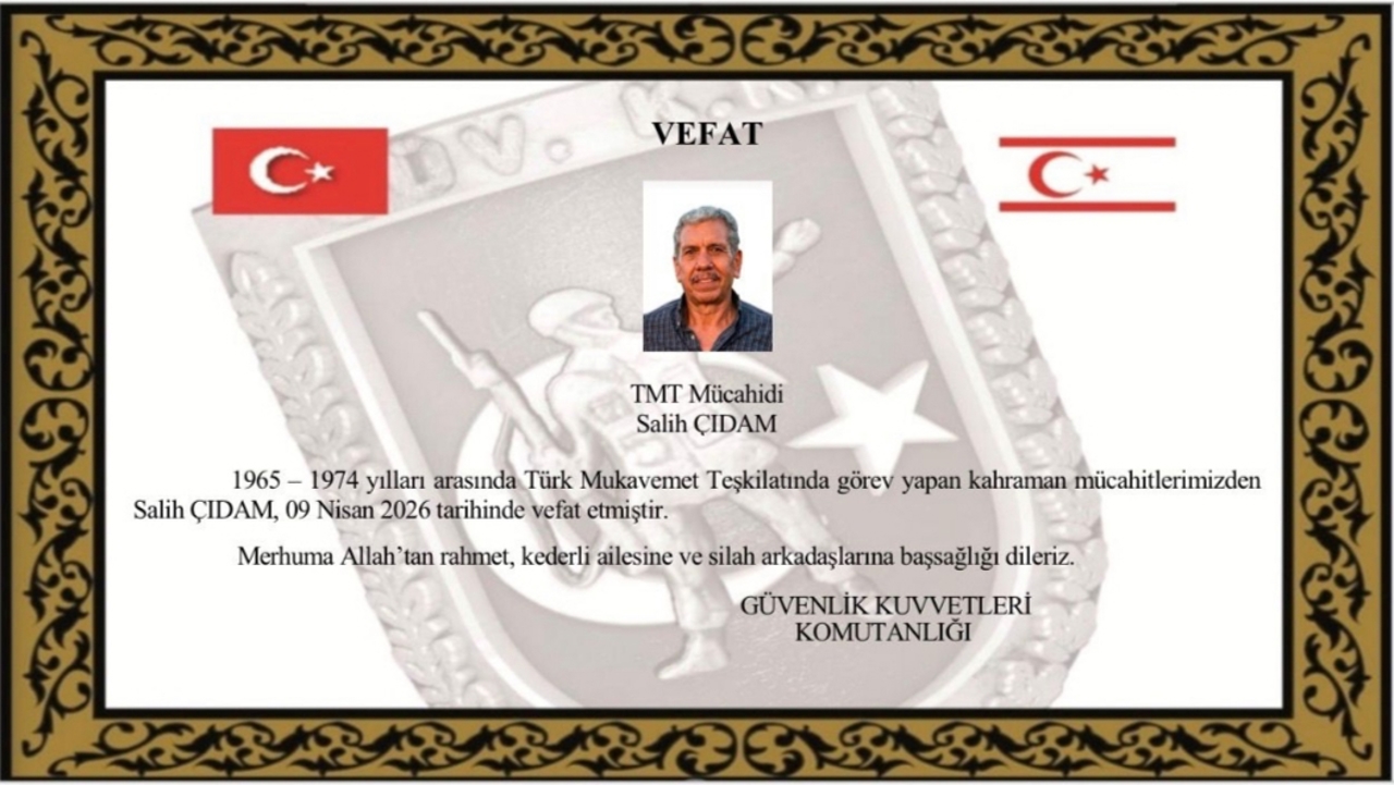 1965 – 1974 yılları arasında Türk Mukavemet Teşkilatında görev yapan kahraman mücahitlerimizden Salih ÇIDAM, 09 Nisan 2026 tarihinde vefat etmiştir.